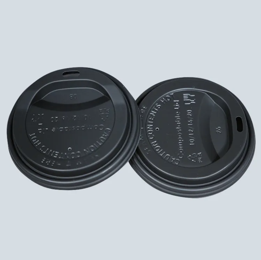 compostable CPLA lid is matching good with paper cup , with white and black color . sizes:65mm , 73mm , 80mm , 90mm MOQ:100000pcs . production time : 20days after received the advance payment . payment term : 30%TT advance payment , 70%TT final payment before shipment . sample policy : free samples , cutomer bear the freight cost .
