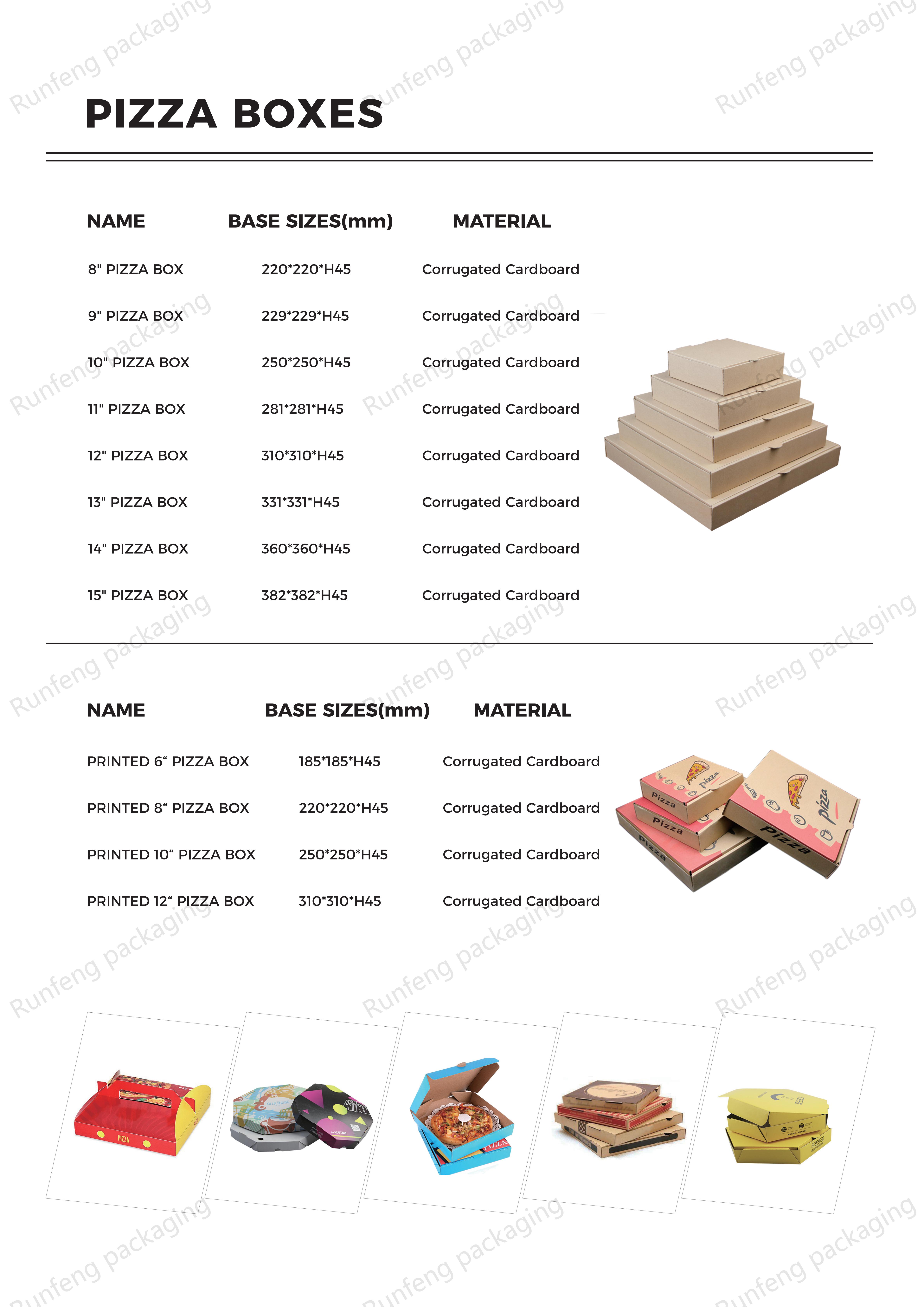 RunFeng Packaging offers durable, biodegradable pizza boxes with customizable sizes and designs, ideal for businesses. As leading pizza box manufacturers, we supply eco-friendly and bulk wholesale pizza boxes ensuring quality and sustainability.